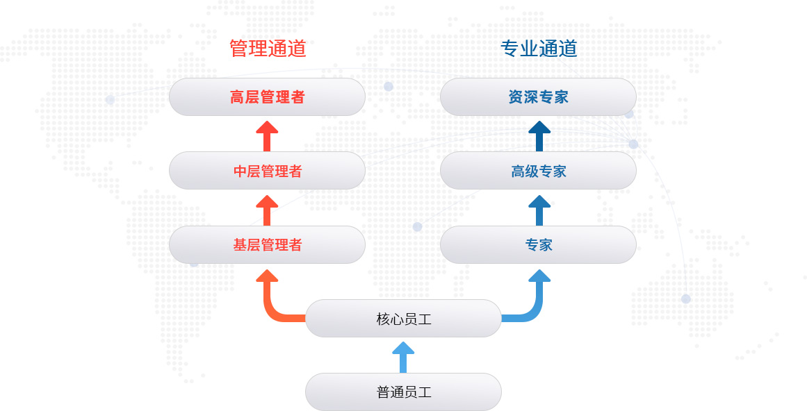 穩(wěn)先為員工提供管理和專業(yè)兩條成長發(fā)展道路,員工可以根據(jù)個人的職業(yè)興趣與專長選擇適合自己的發(fā)展路徑。通過與崗位需求相結(jié)合,使有管理能力和管理潛質(zhì)的員工順利成長為管理者,同時也使?jié)撔你@研技術(shù)、有專業(yè)特長的員工通過自己的努力順利成長為專業(yè)領(lǐng)域內(nèi)的專家。同時公司的大部分中層和基層職位空缺都采用內(nèi)部提升政策,使一些貢獻大、表現(xiàn)好的員工獲得更大的施展才能的舞臺,努力創(chuàng)造雙贏。