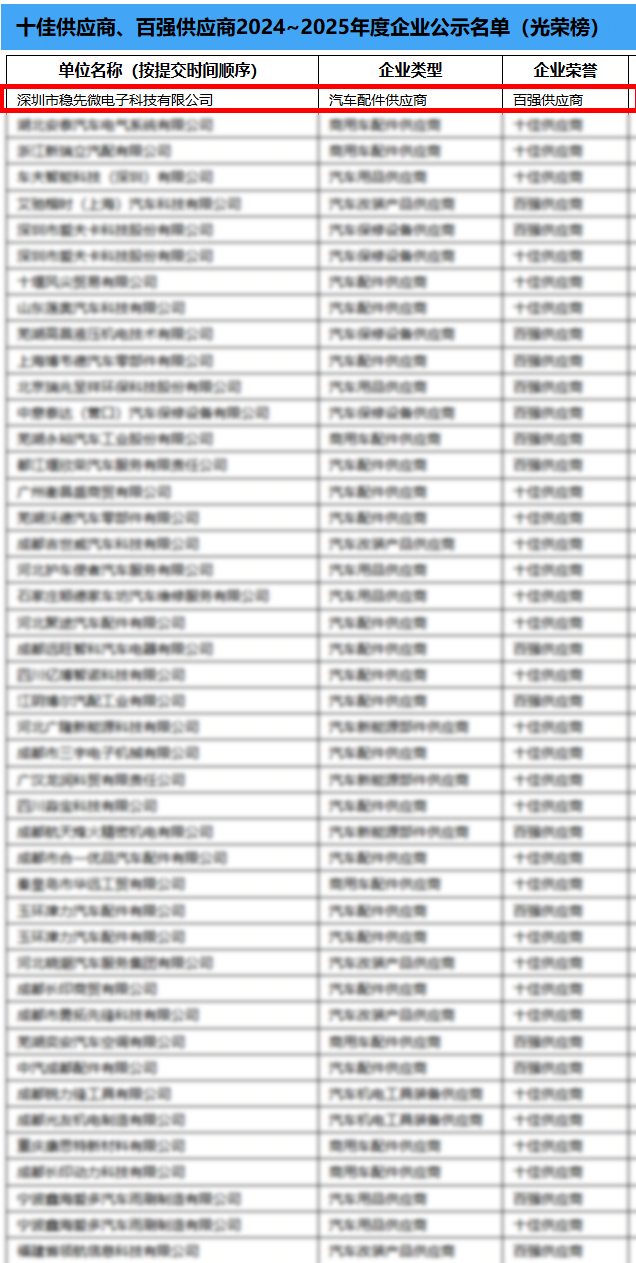 同時,穩(wěn)先微登上“百強供應(yīng)商”企業(yè)光榮榜公示名單,以對其在汽車領(lǐng)域中的突出貢獻進行榮譽嘉獎。